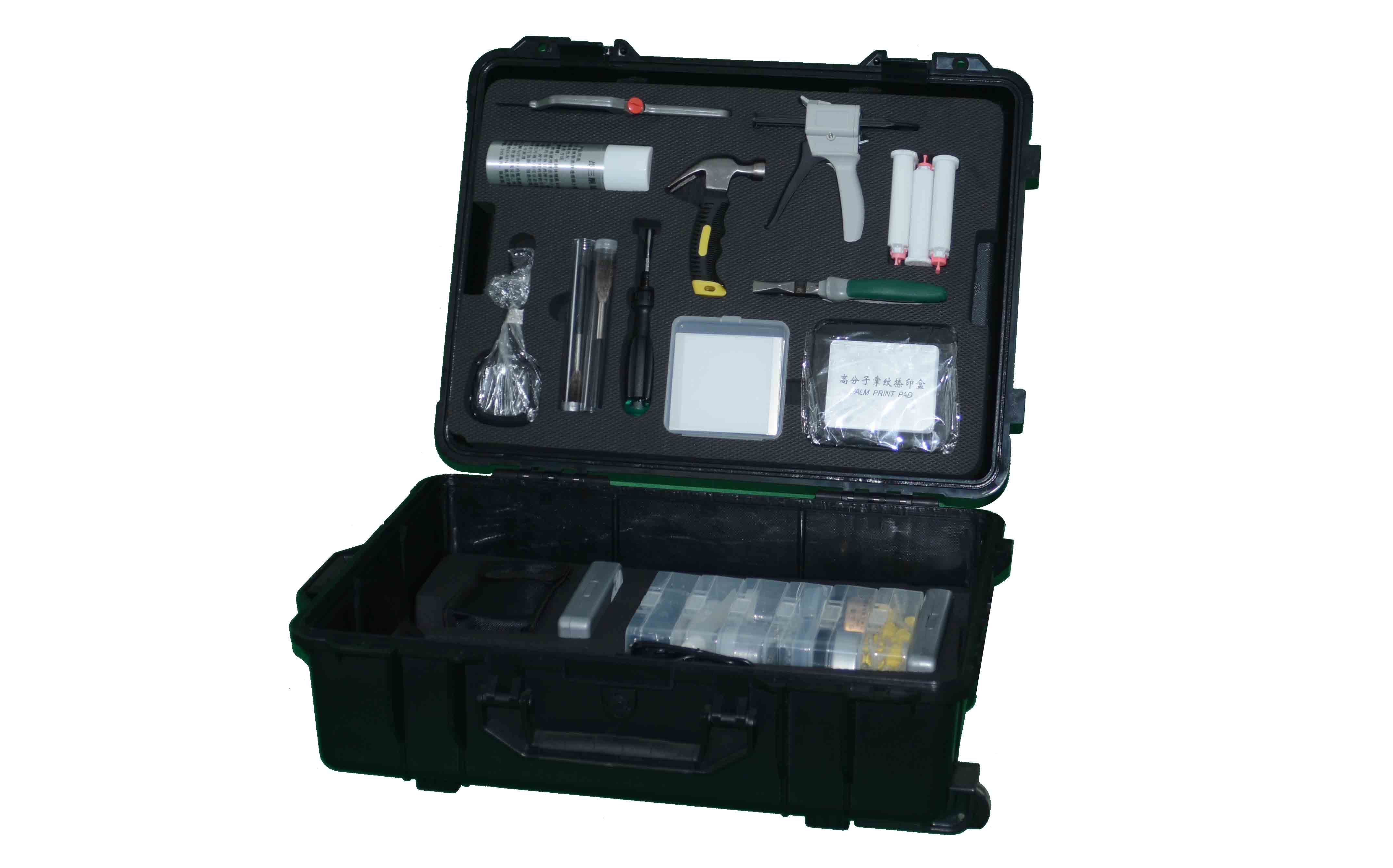 | 17 | 掌纹捺印盒 | 1个 | 用手指或手掌在捺印盒上粘取油墨,再按压在十指指纹信息卡,就可以保存十指指纹和掌纹的信息 |
